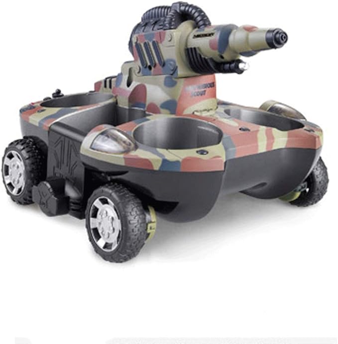 Amphibious Remote Controlled Tank: Pressing the transformation key on the remote control, the amphibious stunt car will transform from the car mode to the boat mode.